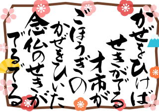 | 令和8年1月掲示板 あけましておめでとうございます 元旦からご聴聞の日暮です 才市同行は、念仏のせきをしながら 心はあったかそうです 合掌 |